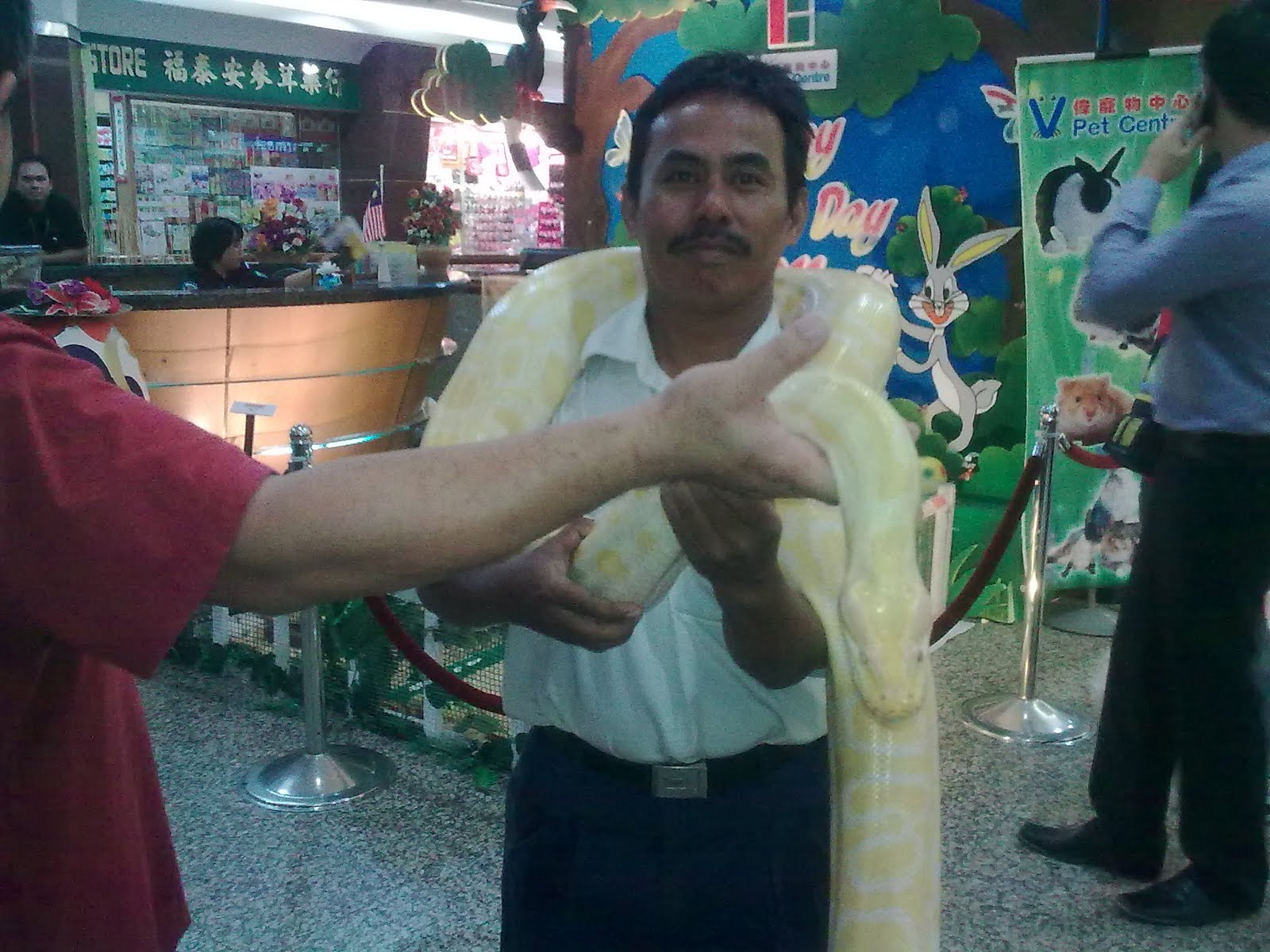 Inilah wajah sebenar orang yang menjaga ular sawa albino itu selamba saja dia memegang dan bermain dengan ular itu tampa memikir takut dibelit dan di makan oleh ular sawa itu.nyata sekali ular itu memang barangan mainan bagi mereka........Dengan senyum selamba atau nak kontrol handsome kot........ha...ha.....ha.....